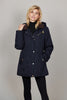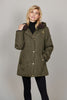 Jackan har både dragkedja och knäppning framtill för ökat skydd mot väder och vind. Rymliga framfickor fodrade med mjukt, varmt tyg ger komfort, medan vindmuddar hjälper till att stänga ute kylan. Mässingsfärgade metalldetaljer fulländar designen med en elegant, rustik touch.